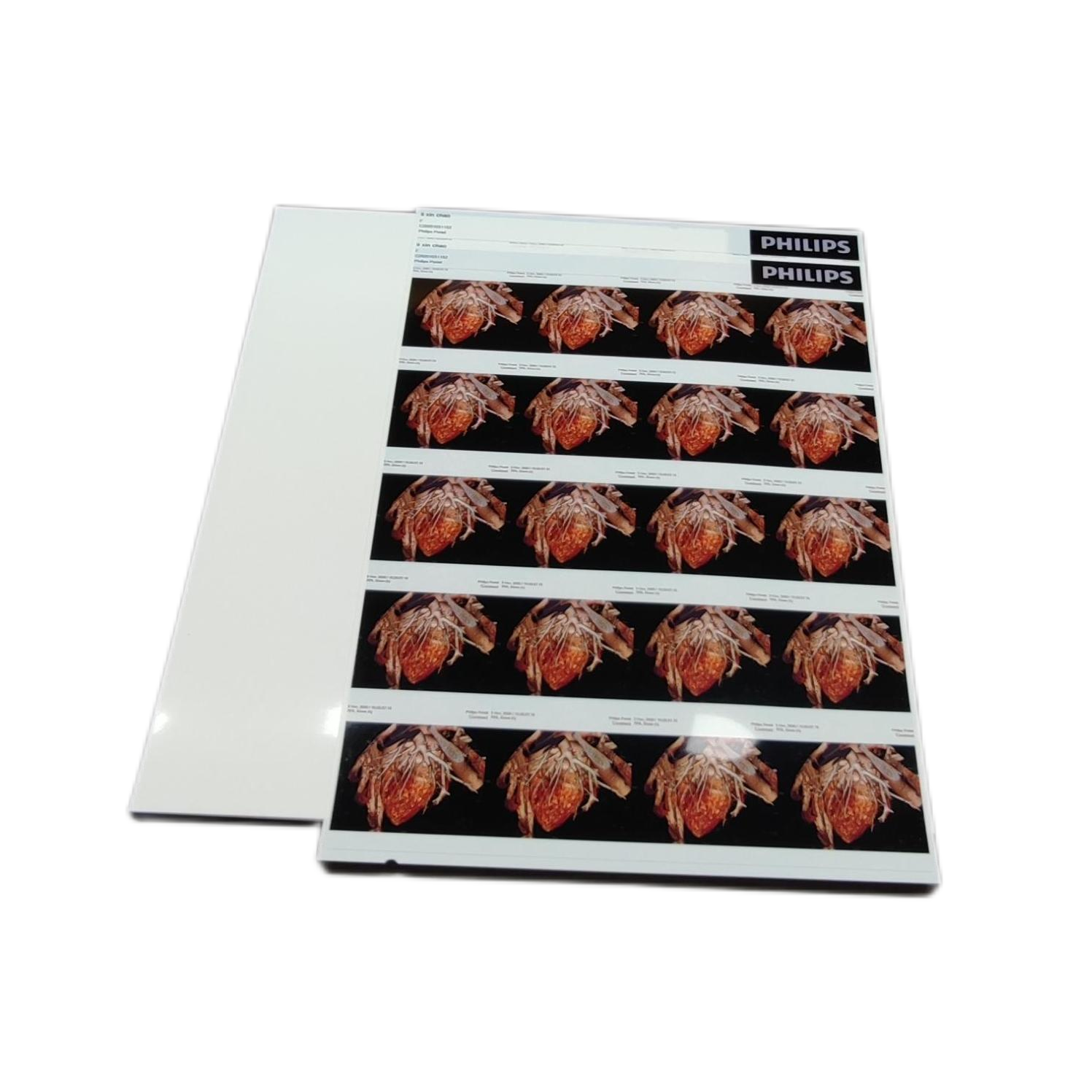 Appearance: Blue transparent Sheet size: 8×10in, 10×12in, 11×14in, 14×17in. Feature: Low fog / High sharpness / High Max density / Bright Tone. Safe light: It can be processed under room light condition. Usage:CR, DR, CT, MRI,x-ray image output. Compatible printer: Fuji DRYPIX 3500, Fuji 3000, 2000, 1000, Hu.q Printer, etc.